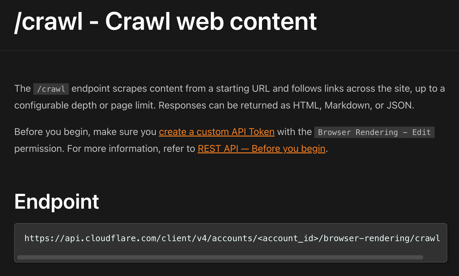 This Cloudflare /crawl endpoint is powerful. Think of /crawl as a managed crawler on Cloudflare browser infrastructure for sites that explicitly allow bot access.